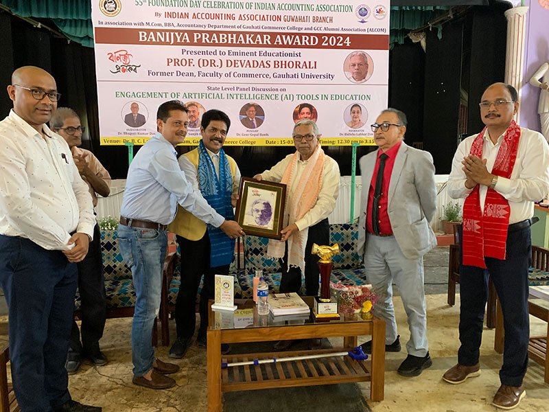 Dr. Devadas Bhorali being felicitated in Gauhati Commerce College by Indian Acounting Association for his immense and valuable contribution in the field of Commerce education of the region in the year 2024. He was conferred with the prestigious title of "Banijya Prabhakar".